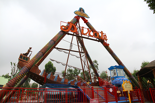 "海盗船"因为其外形仿古代海盗船而得名。船的摆弧最高可达140度,让您在离地17米的高空亲身体验海盗在海上乘风破浪的历险感觉;乘客乘坐于海盗船之上,随着由缓至急的往复摆动,犹如莅临惊涛骇浪的大海之中,时而冲上浪峰,时而跌入谷底,惊险刺激,挑战你的心理承受能力的极限。