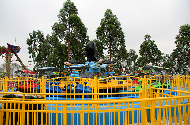 是童趣园游乐最受推崇的项目之一,可乘坐24人,游客乘坐会旋转的飞船,用船上的水枪或激光枪射击鲨鱼岛上的各种造型,当目标被击中后,便会做出喷水,举手等各种动作,姿态可爱,趣味性强。而位居正中的鲨鱼先生被射中后还会喷出水柱向游客发出攻击,使游客更能全身心的投入,从中享受乐趣。