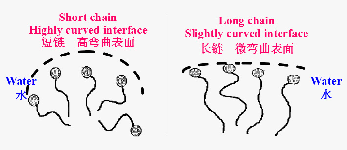 The length of the chain allow to adjust the curvature of the droplets