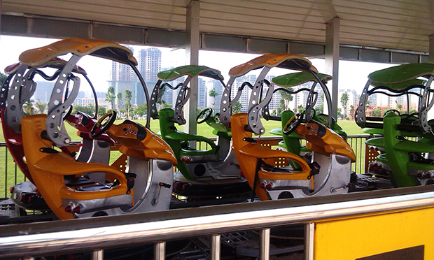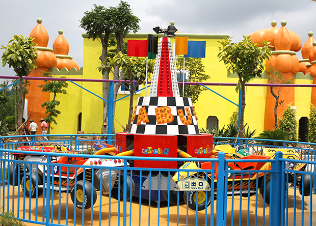 造型精美、风格各异的跑车车队,各自驱动同步行驶,沿轨道方向穿梭于具有现代化标志的立式轨道上,配有五彩缤纷的彩灯、音响及儿童卡通画装饰。让孩子们体会翻山越岭和飞跃时空的感觉,够刺激又无恐慌感,使人身临其境,赏心悦目,深受儿童喜爱。